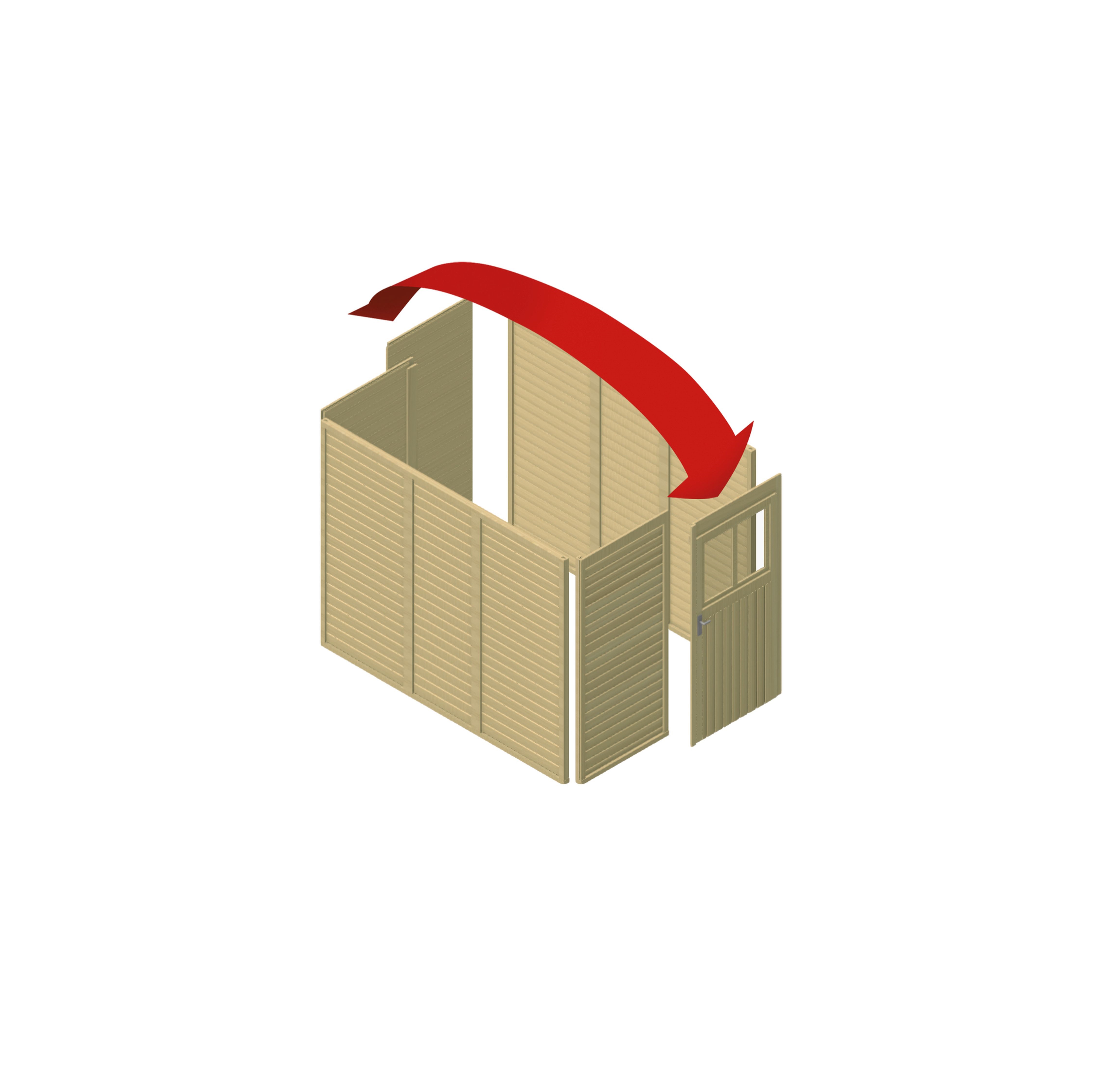 Der Geräteraum für unsere Einzelcarports besteht aus kesseldruckimprägnierten Holz. Er besteht aus 19mm Softline-Profilen zum Einbau zwischen den Pfosten. Die Tür ist frei positionierbar.