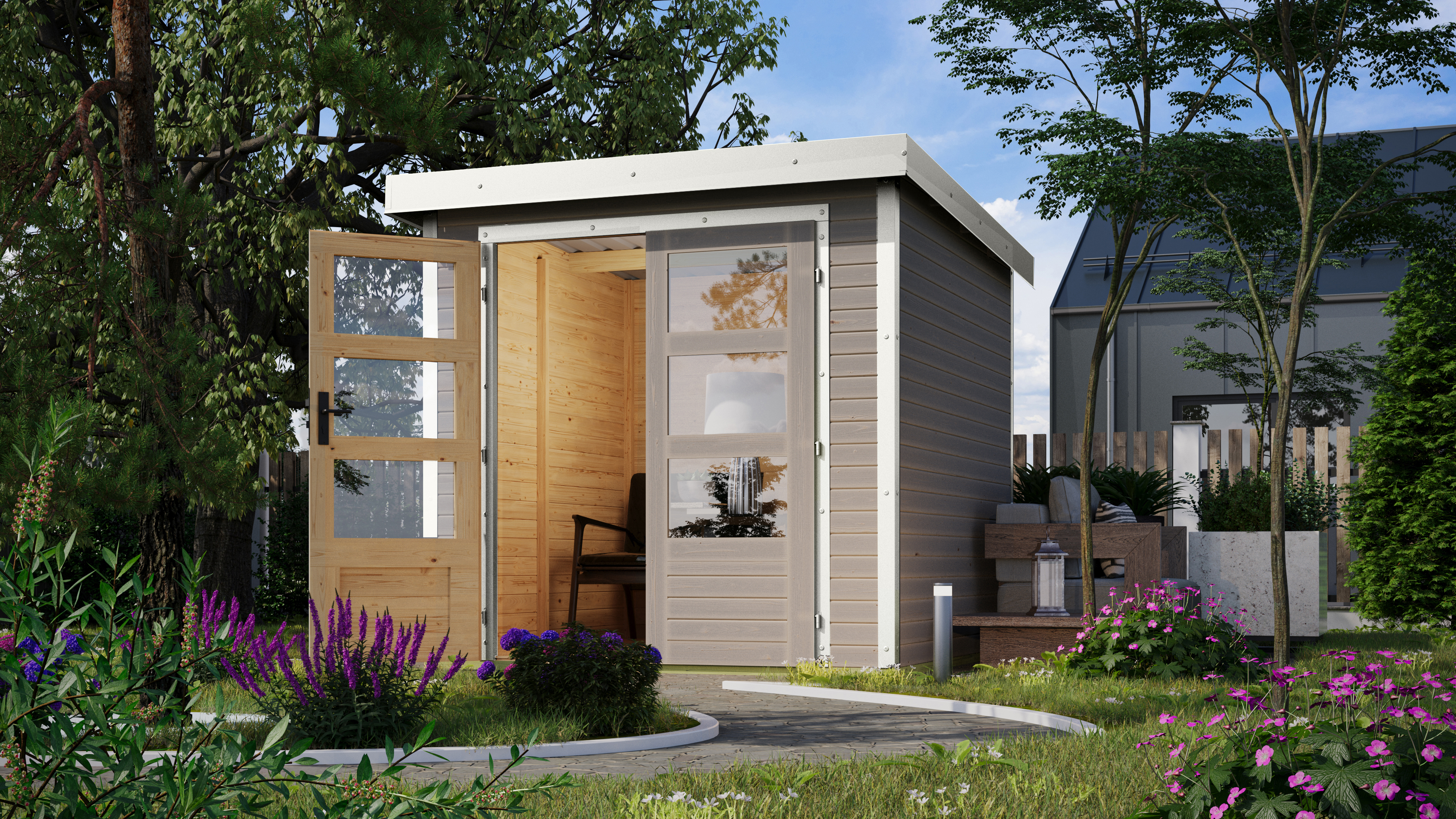 Mit dem optionalen Anbaudach erhalten Sie zusätzlichen Stauraum und erweiterte Nutzungsmöglichkeiten als Gartenlounge. Machen Sie es zu Ihrem persönlichen Rückzugsort.