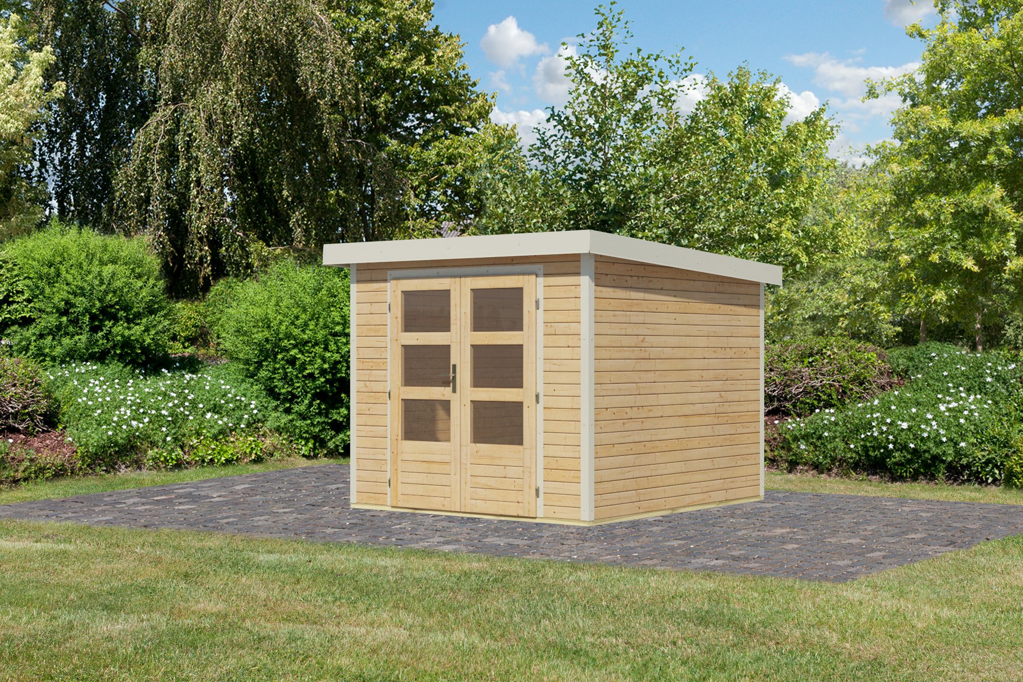 perfekte Vereinigung von Holz und Metall mit dem Hybrid-Gartenhaus von Karibu.