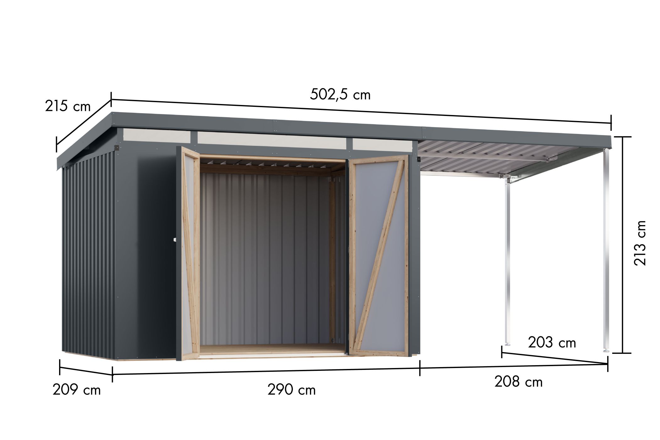 Metallhaus Iridium 3 im Set mit Anbaudach 2 m