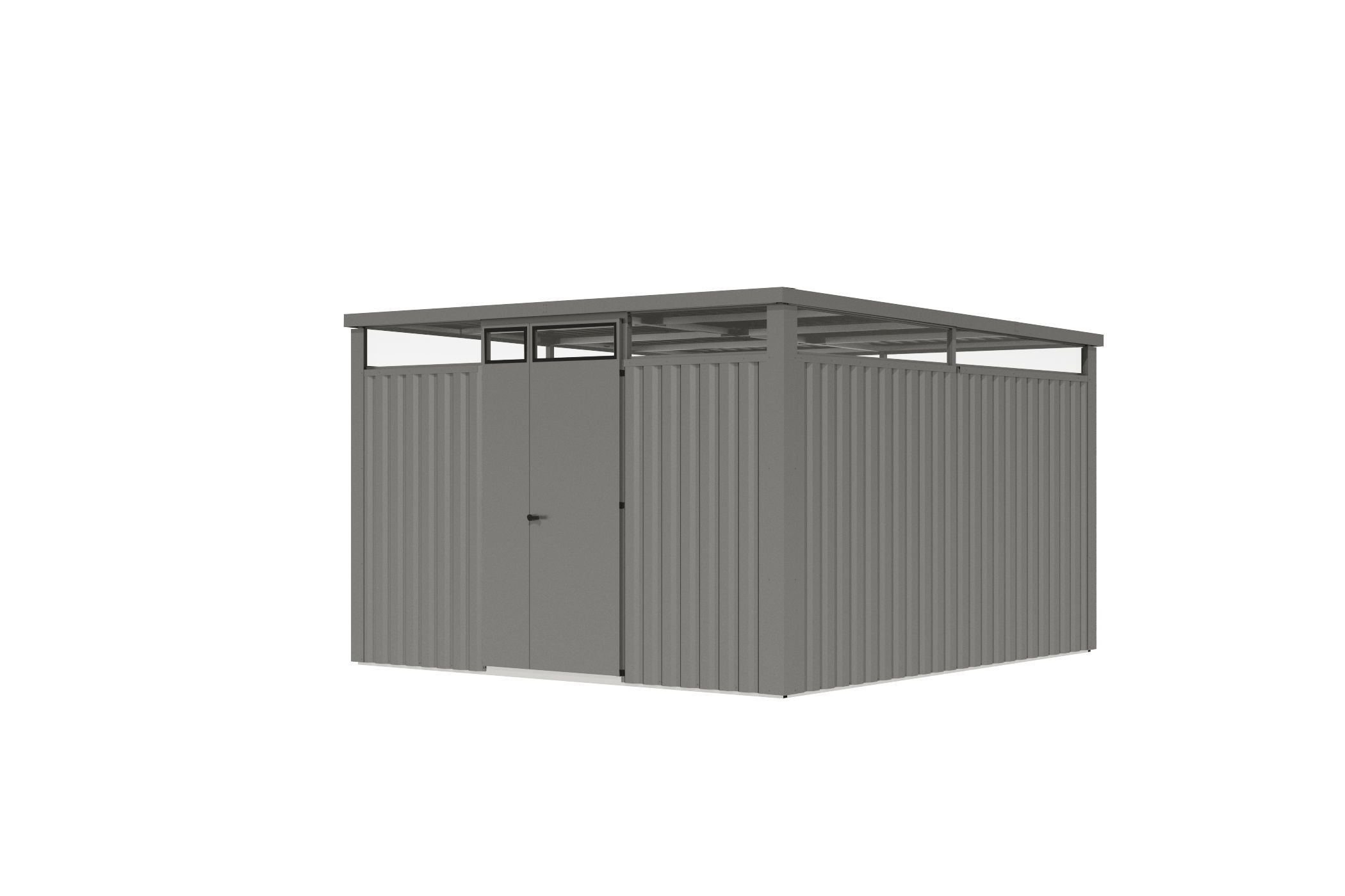 - Oberlicht: Durch das umlaufende Lichtband aus Kunstglas unter dem Dach sowie in der Tür gelangt sehr viel Tageslicht ins Innere Ihres neuen Metall-Gartenhauses von Karibu.