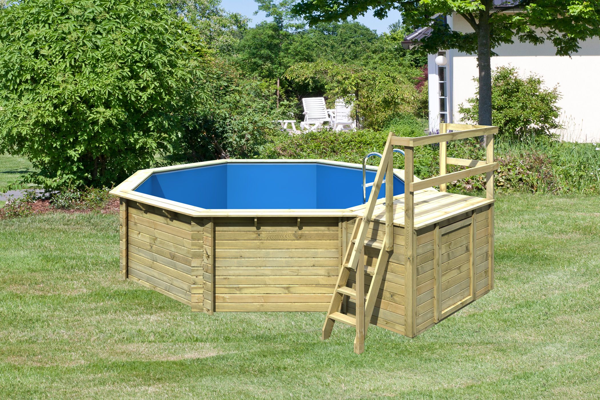 - Inkl. hochwertiger Edelstahl- und Holzleiter