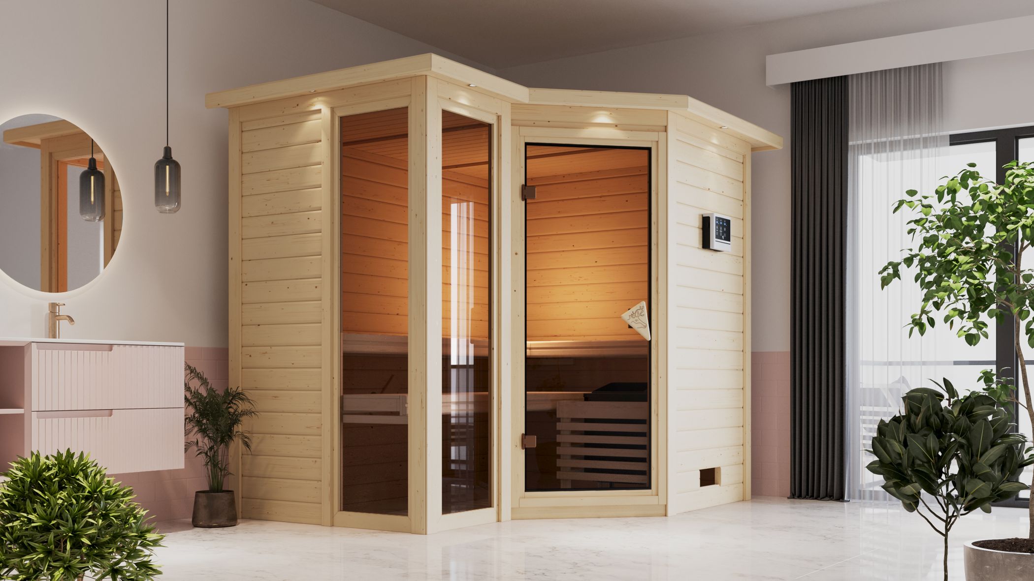 Karibu Design Sauna "Sauna Amara" 4 Personen ohne Ofen mit Dachkranz