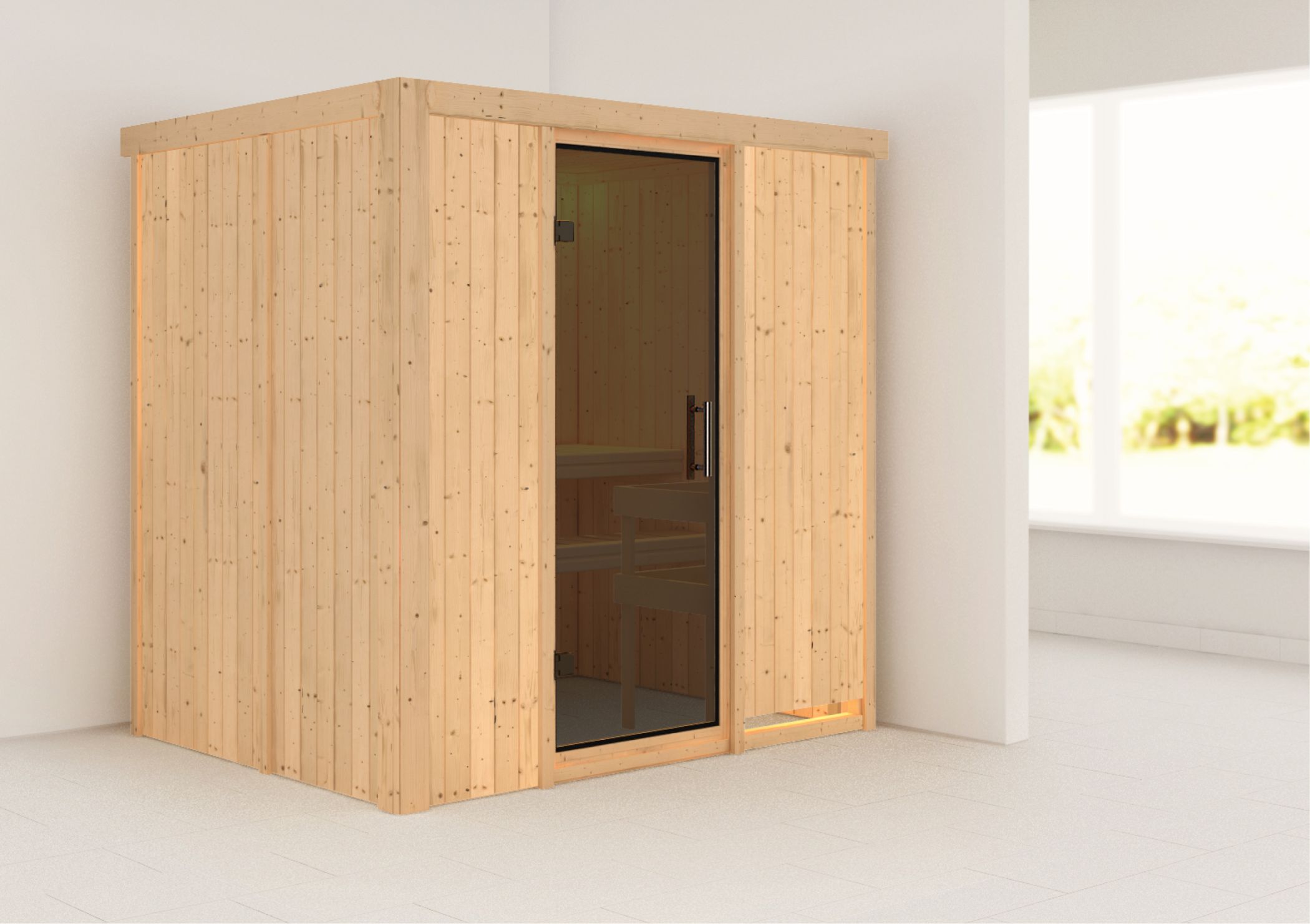 Karibu Innensauna "Sauna Fanja" 3 Personen 230 V ohne Ofen Glastür (grau getönt)