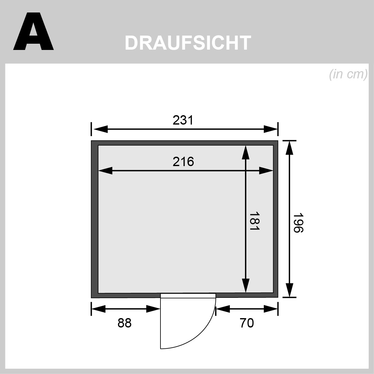 Sparen Sie wertvolle Energie mit der Systemsauna Gobin. Eine 68mm starke Konstruktion, bestehend aus einer Rahmenkonstruktion mit 42mm starker Mineraldämmwolle und einer Verkleidung an der Sichtseite aus 12,5mm Spezial-Softline-Profilholz, hält die Wärme optimal im Saunainneren. Die Decke besteht aus einer 57mm starken Spezialplatte mit Mineraldämmwolle. Die Außenmaße ohne Dachkranz betragen 231 x 196 x 198cm (B/T/H). Die Sauna verfügt über 3 Saunabänke aus Espenholz zum Entspannen und Wohlfühlen. Mit einem optional erhältlichen 9kW-Saunaofen bringen Sie das Innere schnell auf Temperatur. Bei dem Ofen können Sie zwischen einer Variante mit integrierter Steuerung, einer Variante mit externer Steuerung oder einem 9kW Bio-Kombiofen wählen. So ist garantiert für jeden das Richtige dabei. Durch einen optionalen Dachkranz inkl. drei LED-Spots können Sie Ihre Sauna von außen beleuchten und sie so perfekt in Szene setzen. In den Innenraum gelangen Sie durch eine Saunatür. Hier können Sie sich zwischen vier möglichen Varianten entscheiden. Egal ob klassisch mit bronziertem Glas, modern mit graphitfarbenem Glas, schlicht mit klarem Türglas oder passend mit einer energiesparenden, wärmegedämmten Holztür mit klarem Isolierglas. Durch die vorgefertigten Wand und Deckenelemente wird Ihnen ein einfacher Aufbau ermöglicht. Passen Sie die Sauna auf Ihre Bedürfnisse an mit unserem optional erhältlichen Zubehör. Eine ergonomische Kopfstütze für den optimalen Liegekomfort, eine ergonomische Rückenlehne zur perfekten Entspannung oder eine Saunaleuchte modern für das richtige Ambiente. Genießen Sie die Ruhe nach einem anstrengenden Arbeitstag bei einem ausgiebigen Saunagang und erholen Sie sich vom Alltag. Verringern Sie den Energieverbrauch beim Saunieren mit der 68mm Systemsauna Gobin.