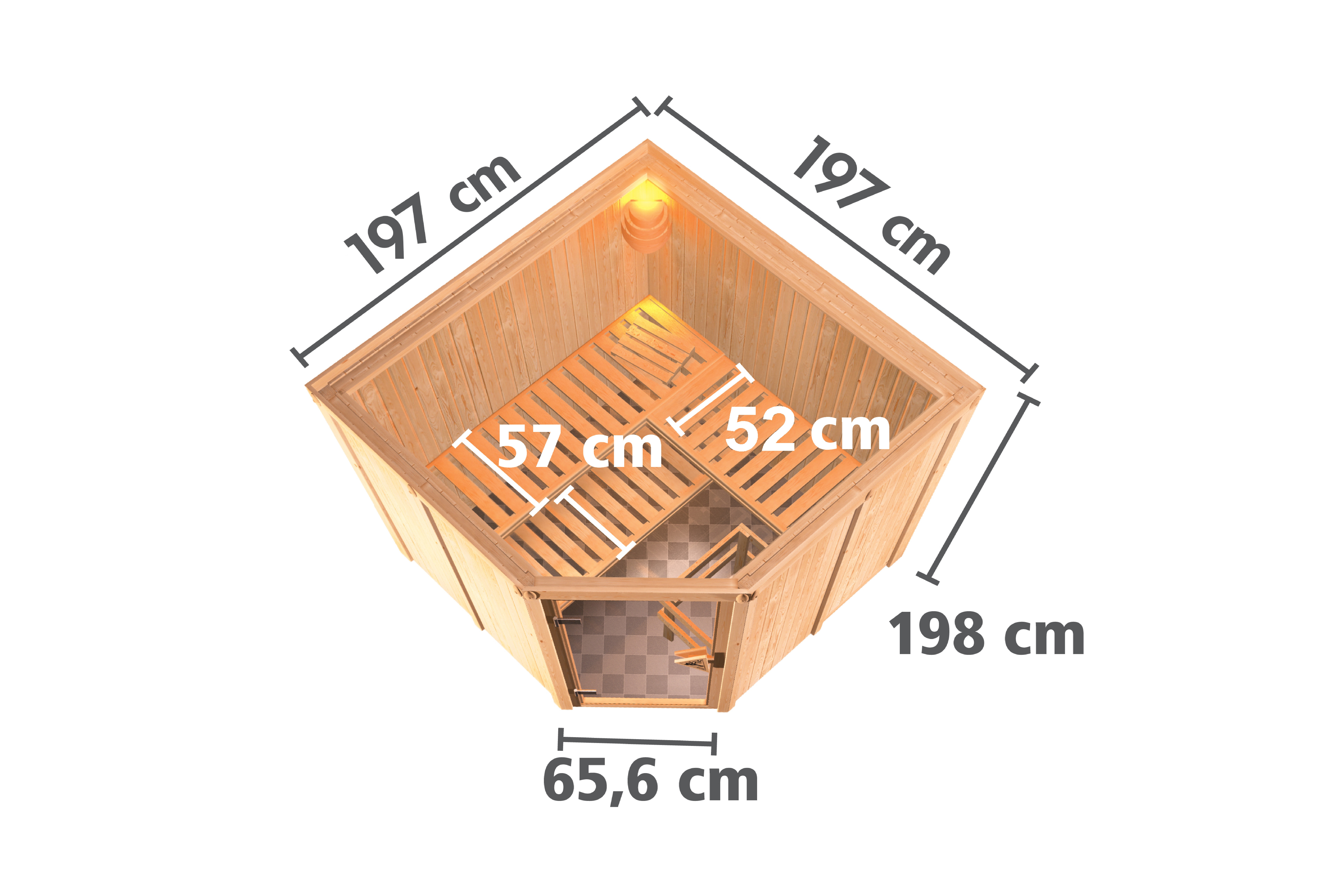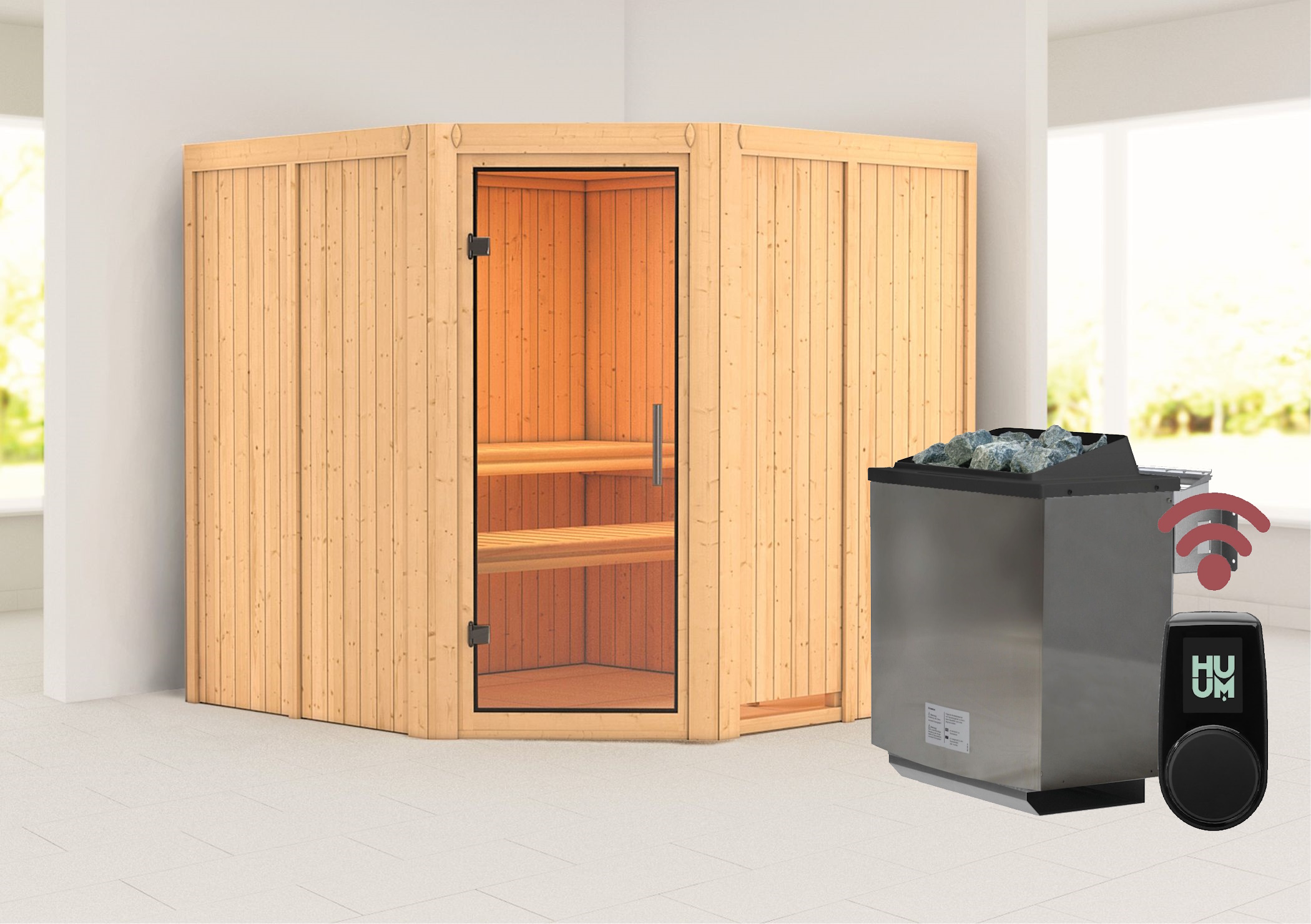 Karibu Innensauna "Sauna Marla 2" 5 Personen 9 kW Bio-Kombi Ofen + Steuergerät HUUM WIFI