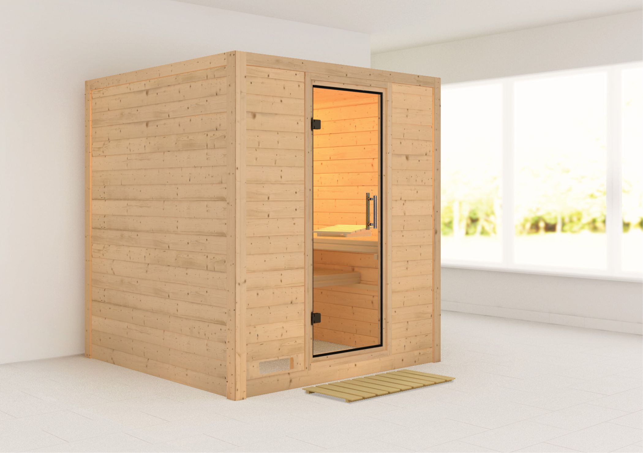 Karibu Massivholzsauna "Sauna Mojave" 6 Personen ohne Ofen Glastür (klar)
