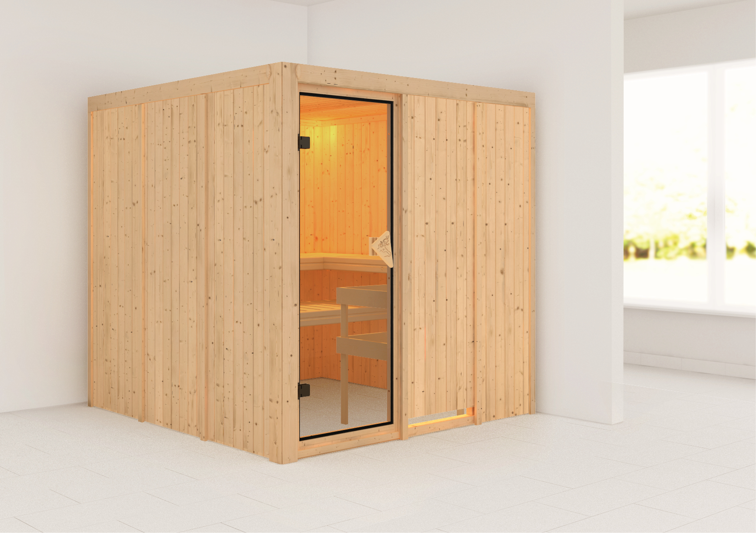 Karibu Innensauna "Sauna Rodin" 5 Personen Natur ohne Ofen Glastür (braun getönt)