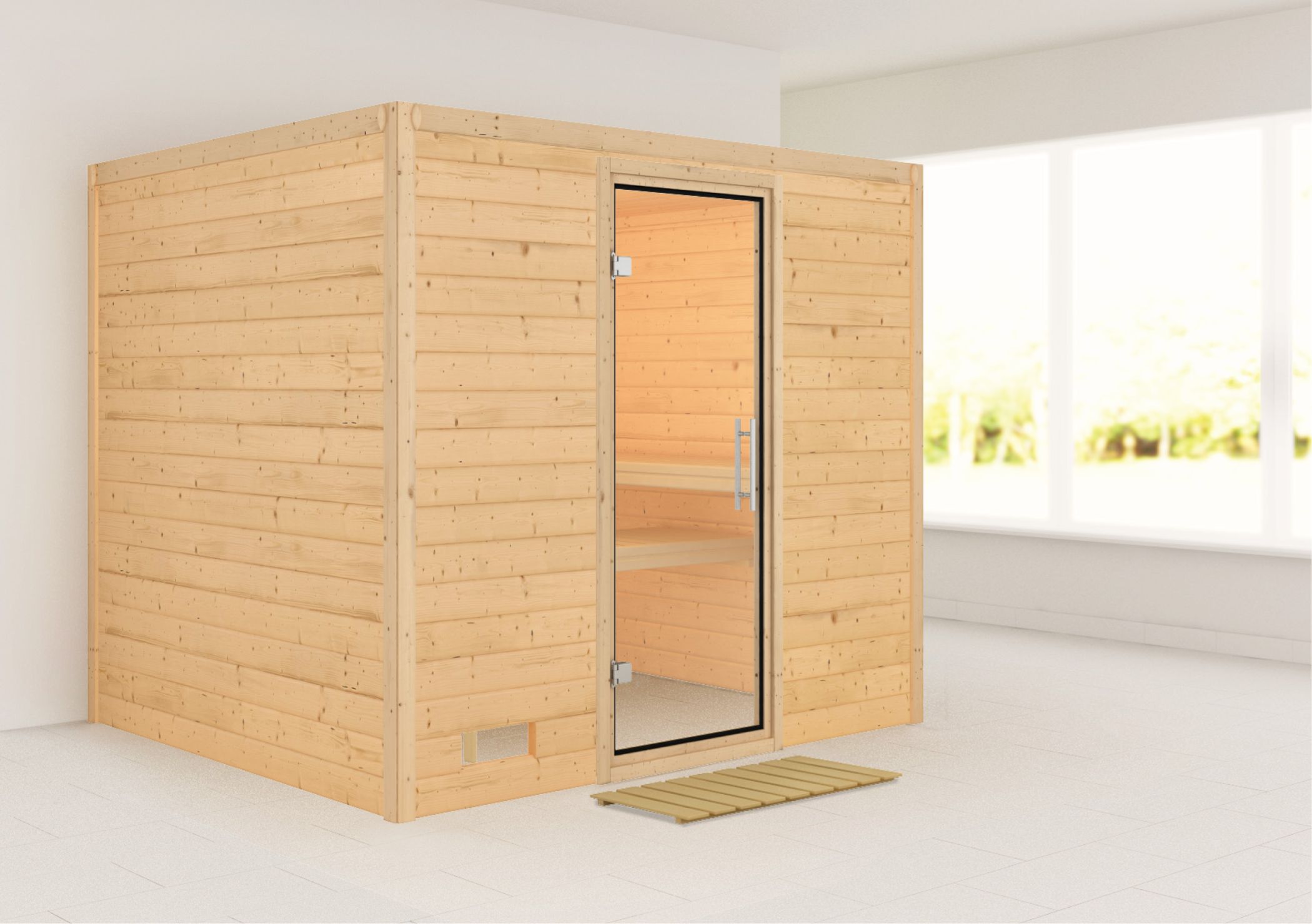 Karibu Massivholzsauna "Sauna Sonara" 5 Personen ohne Ofen Glastür (klar)