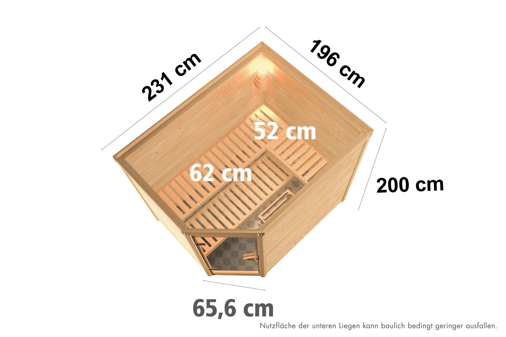 Karibu Massivholzsauna "Sauna Tanami" 5 Personen ohne Ofen