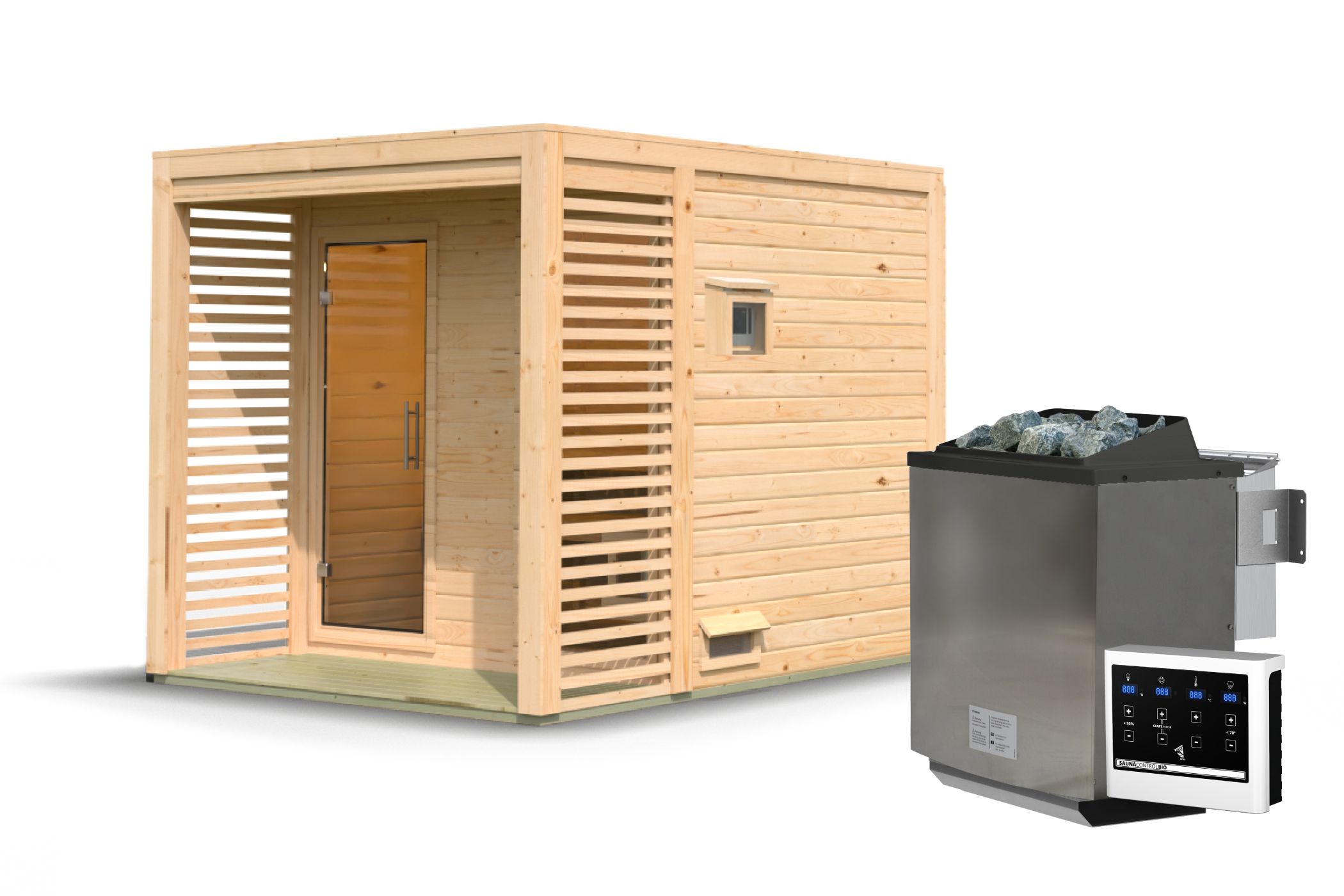 Karibu Gartensauna "Saunahaus Angkor 2" 5 Personen 9 kW Bio-Kombi Ofen + Steuergerät