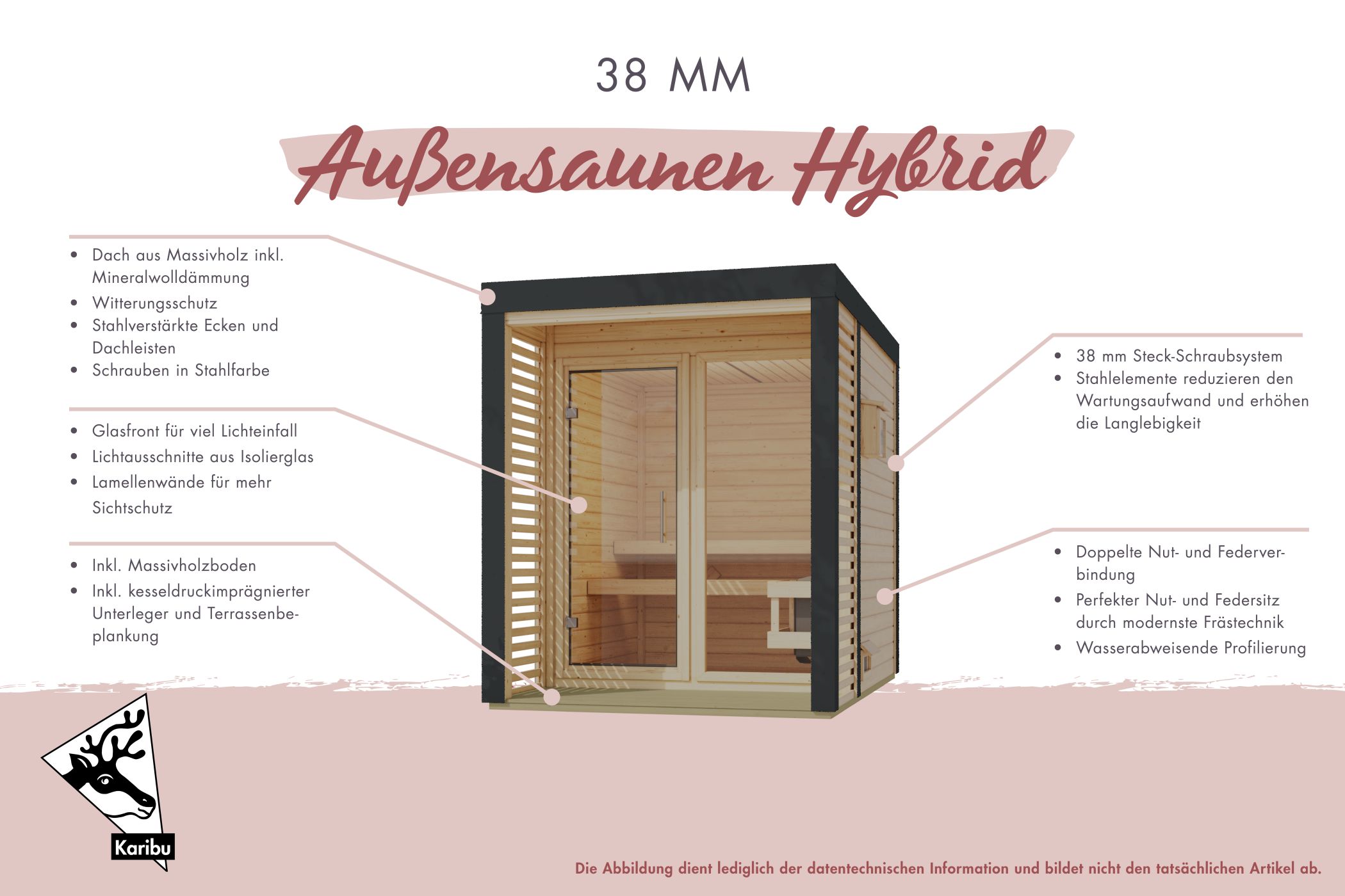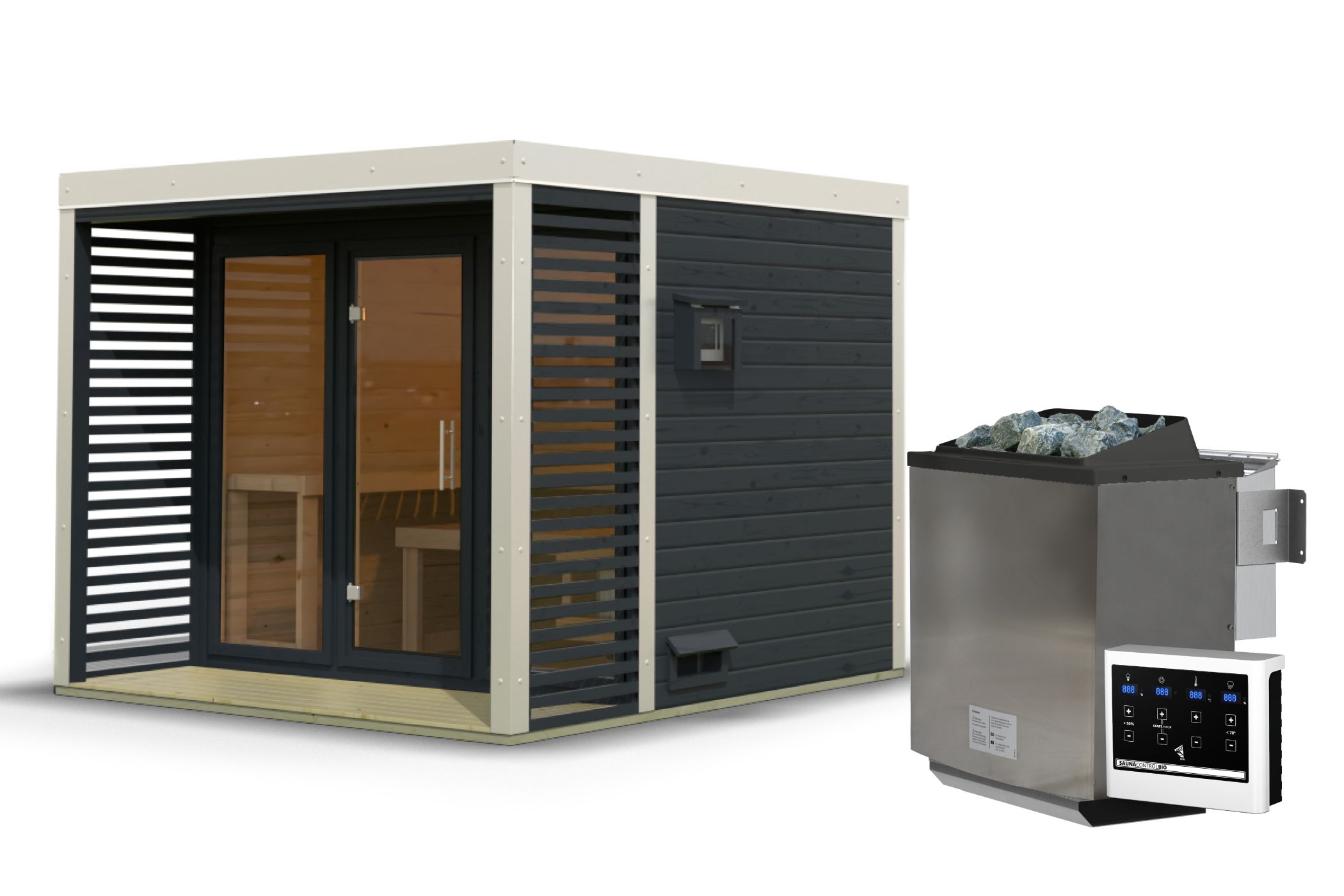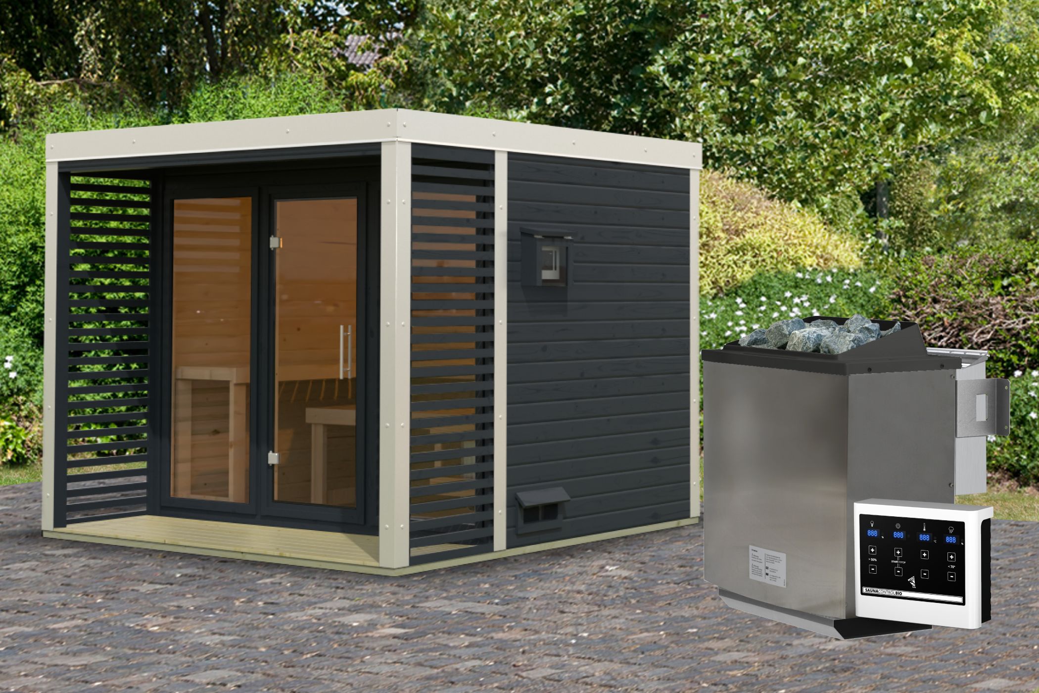 Karibu Gartensauna "Saunahaus Ares 3" 5 Personen Anthrazit 9 kW Bio-Kombi Ofen + Steuergerät