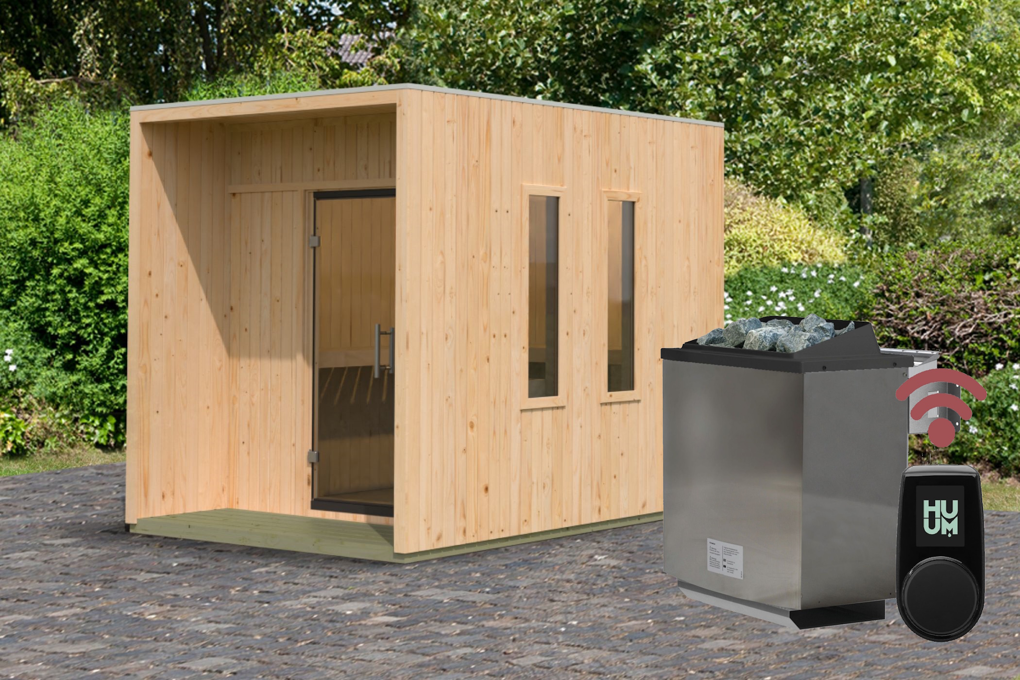 Karibu Gartensauna "Saunahaus Laguna" 5 Personen 9 kW Bio-Kombi Ofen + Steuergerät HUUM WIFI