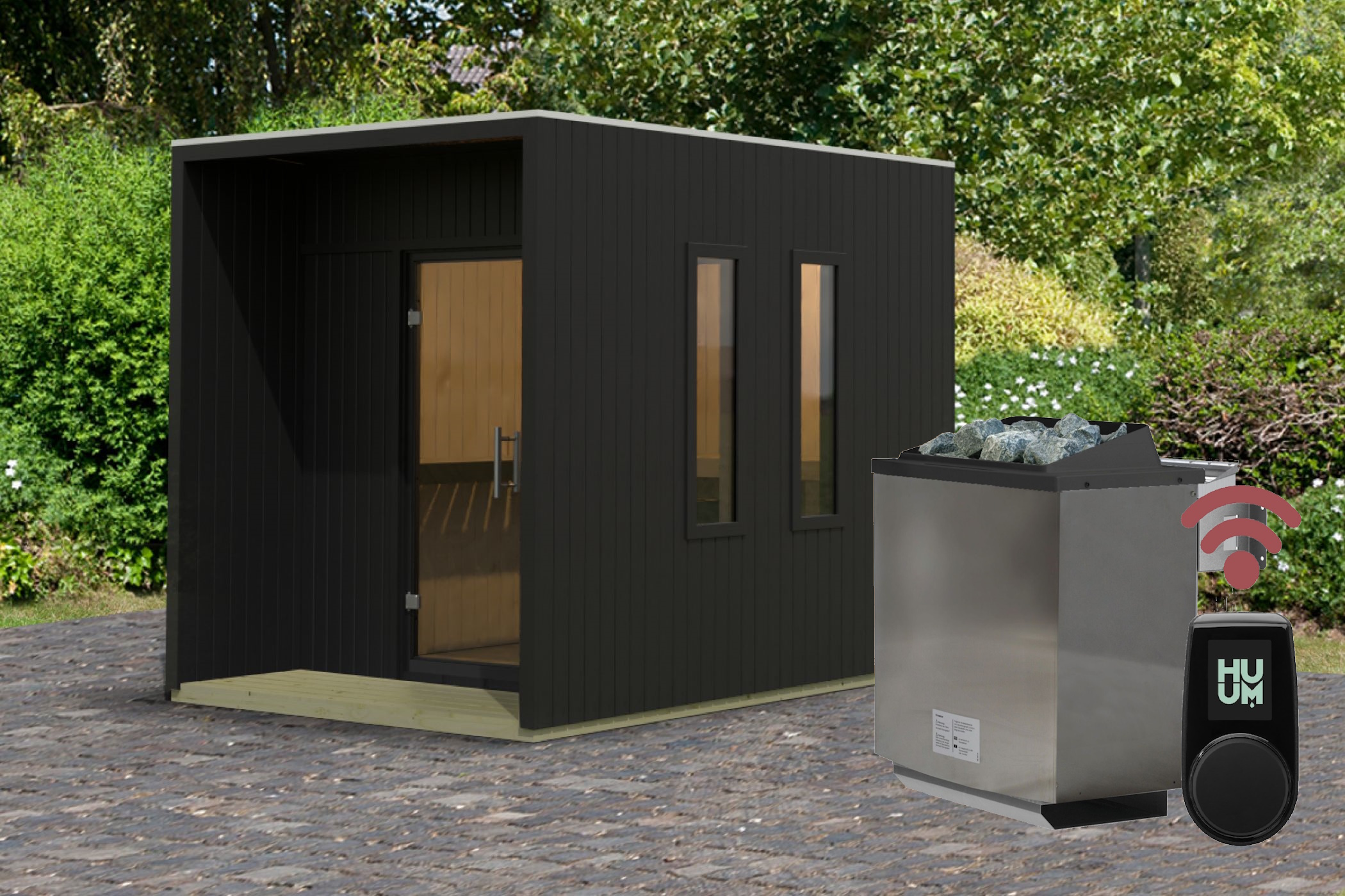 - Im Set inkl. Ofen (nach Wahl)/ HUUM WiFi Steuergerät (App Steuerung möglich) und Saunasteine