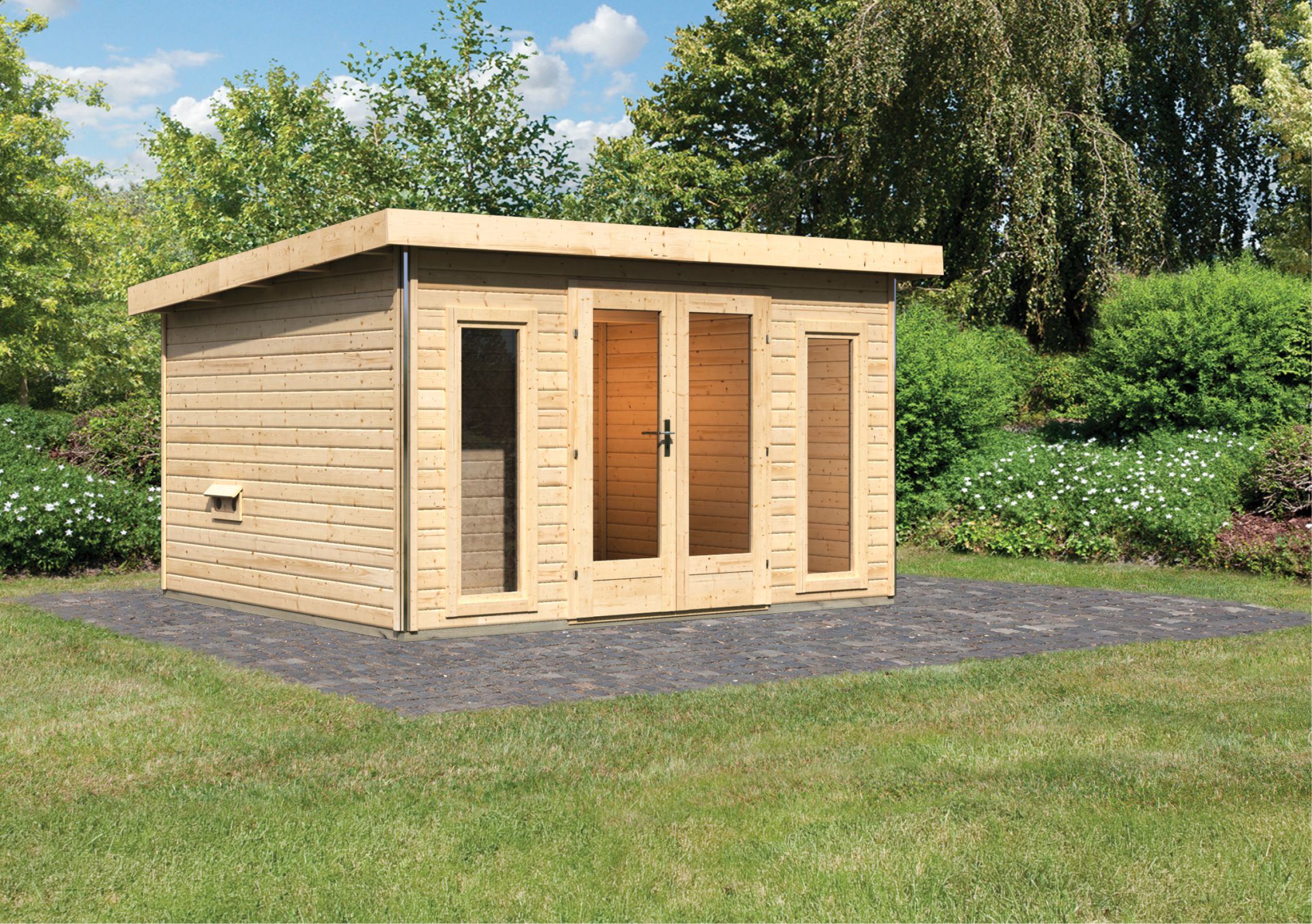 Karibu Gartensauna "Saunahaus Mainburg 2" mit Vorraum 5 Personen Natur ohne Ofen