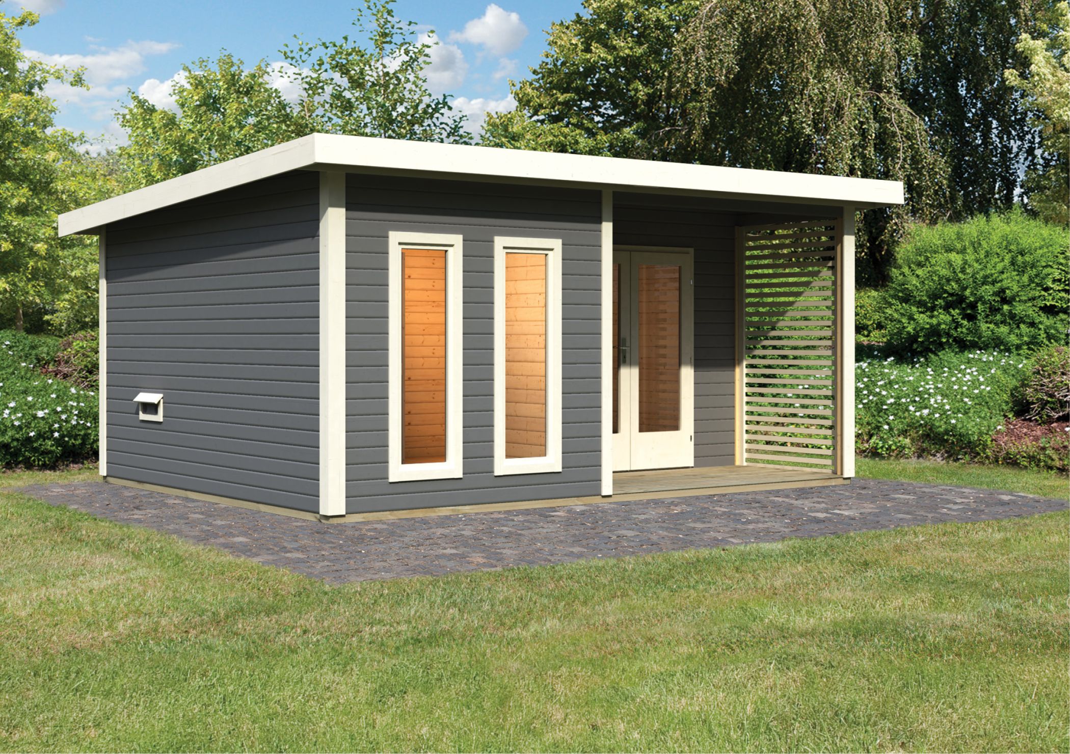 Karibu Gartensauna "Saunahaus Mainburg 5" mit Vorraum 5 Personen Terragrau ohne Ofen