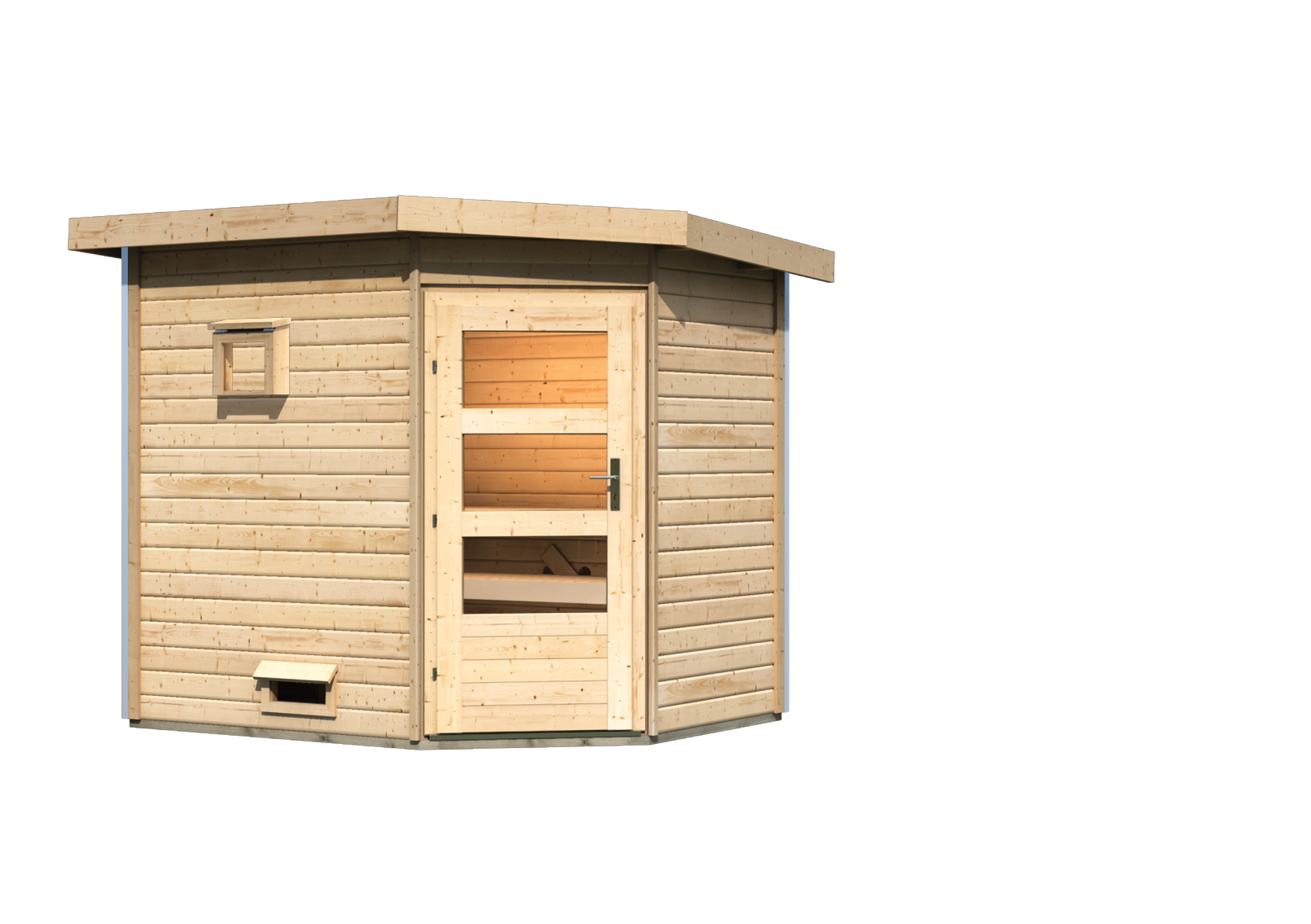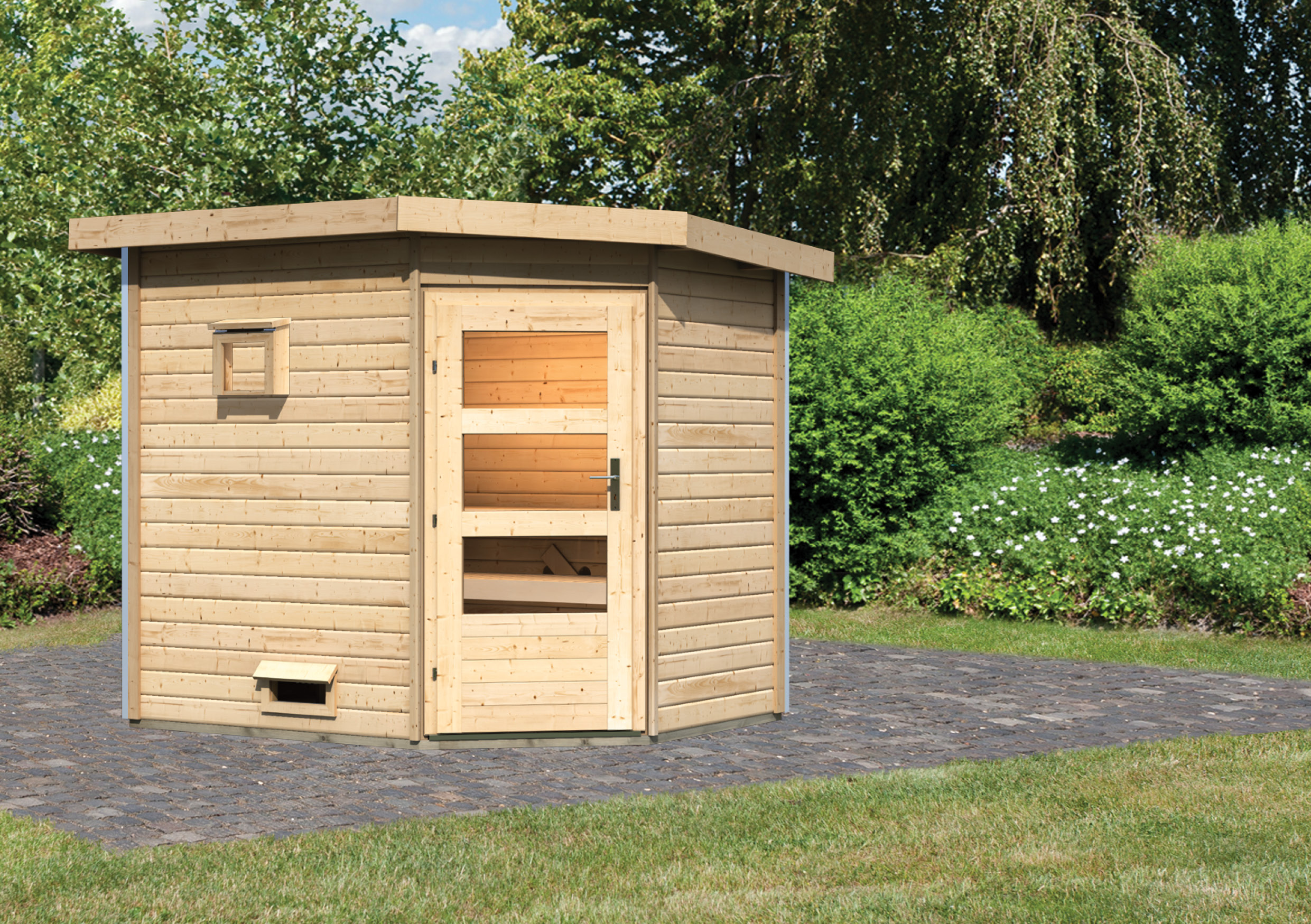 Karibu Mini Gartensauna "Saunahaus Mikka" 5 Personen Natur ohne Ofen moderne Tür
