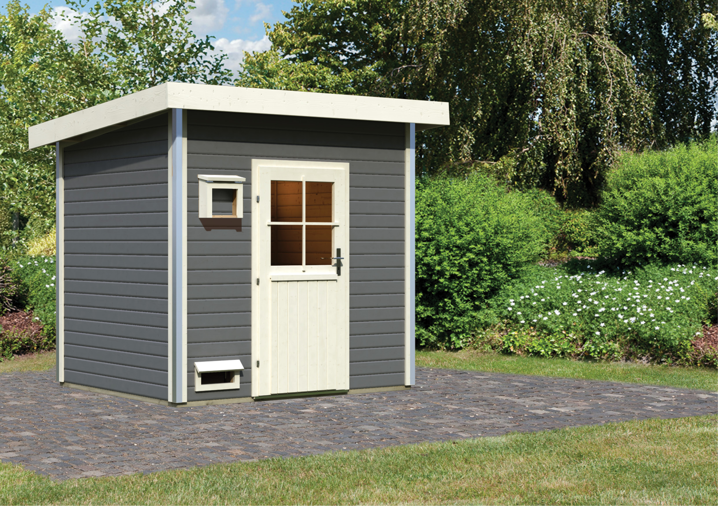 Karibu Mini Gartensauna "Saunahaus Norge" 5 Personen Terragrau ohne Ofen