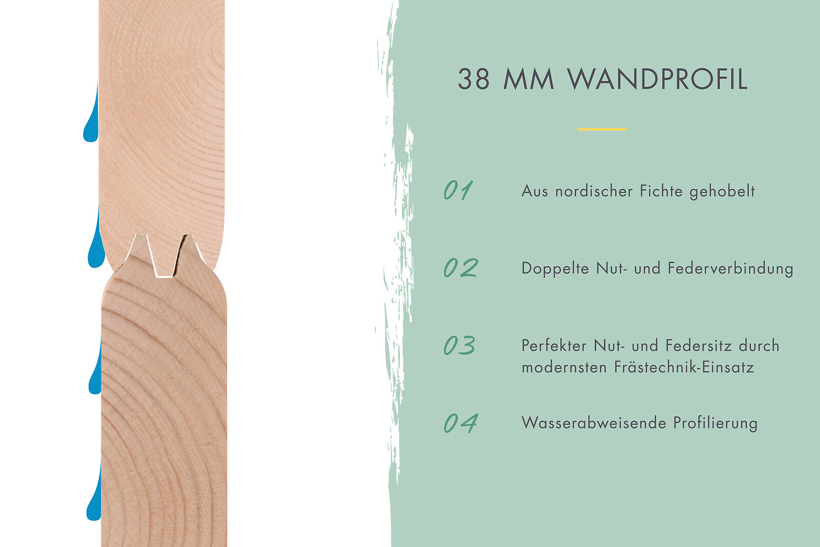 - Inklusive kesseldruckimprägnierter Unterkonstruktion