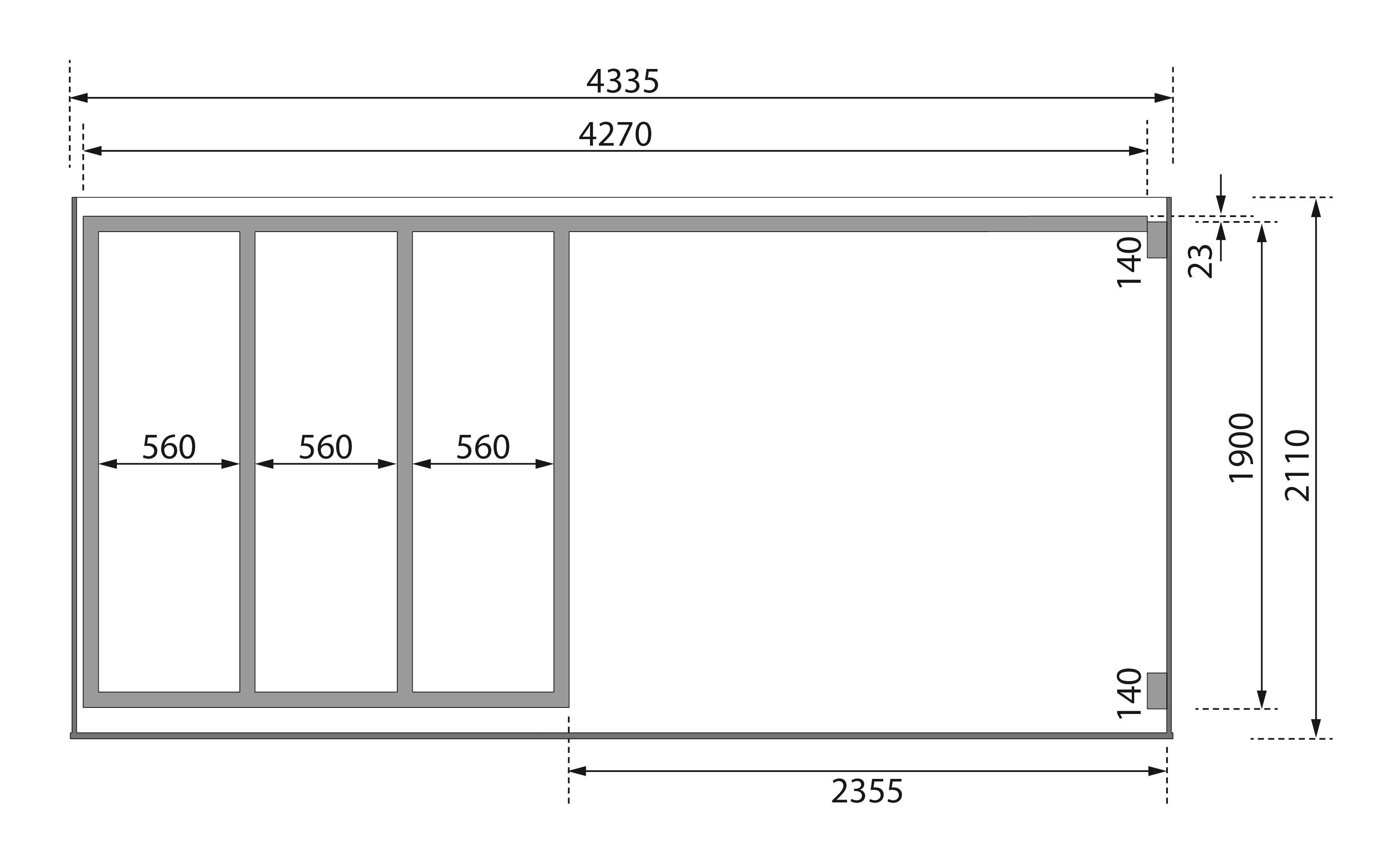 - Wahlweise mit oder ohne Anbaudach 2,40 Meter