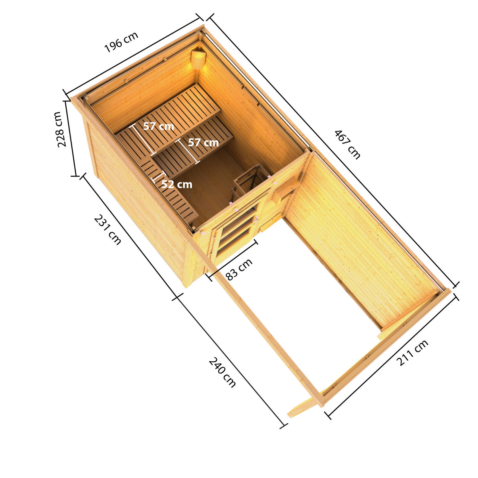 | Innenmaß Breite Sauna: | 219,5 cm |