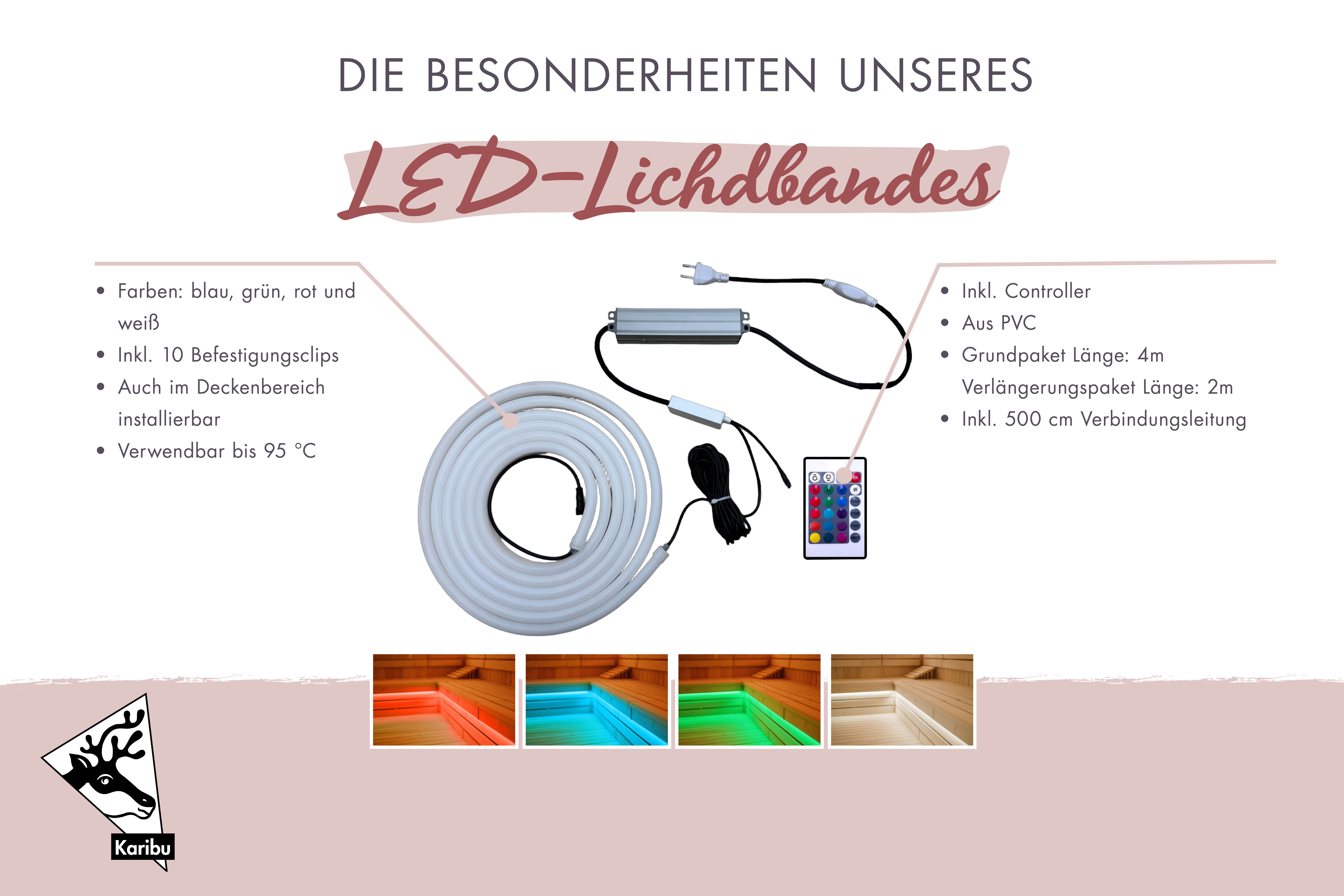 Saunalicht LED Schlauch Unterbankleuchte Farblicht Leuchtenset 400cm
