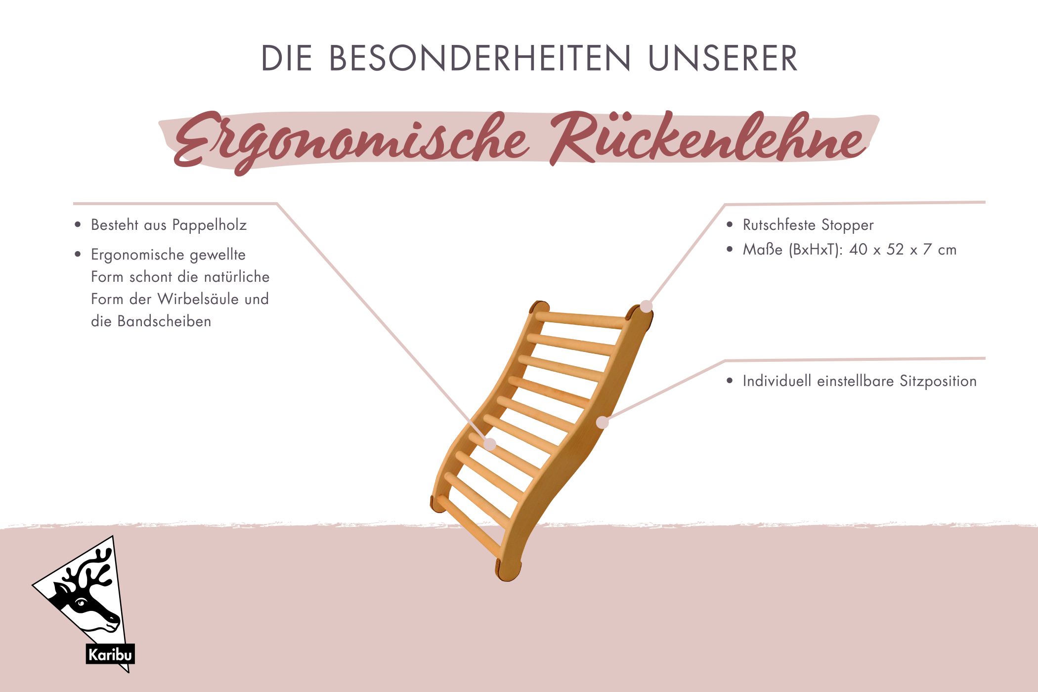 Schonen Sie Ihre Wirbelsäule beim Sitzen in der Sauna und machen Sie es sich bequem mit der ergonomischen Rückenlehne. Aufgrund der gewellten Form passt sie sich Ihrem Rücken optimal an und sorgt so für ein angenehmes Gefühl. Die Rückenlehne besteht aus Pappelholz und besitzt oben und unten rutschfeste Stopper für einen sicheren Halt auf der Saunaliege. Die ergonomische Rückenlehne mit einem Maß von (BxHxT) 40x52x7 cm ist der ideale Begleiter für einen entspannten Saunagang.