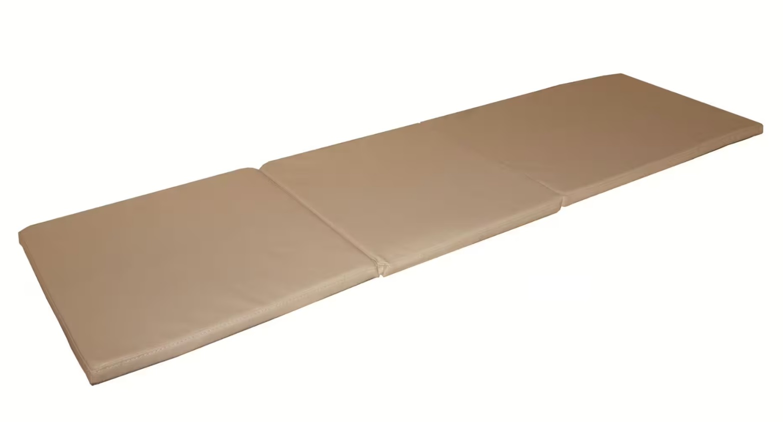 Die klappbare Bankauflage besteht aus einem strapazierfähigen Material, dass sich im Medizinbereich mehrfach bewährt hat. Der antibakterielle Bezug ist schweißbeständig und pflegeleicht. Zusätzlich wurde die Polsterauflage mit einem praktischen Reißverschluss und einer Antirutschmatte an der Unterseite versehen. / Antibakterielles Kunstleder / Farbe: beige / Abmaße: 1810 x 540 x 30 mm