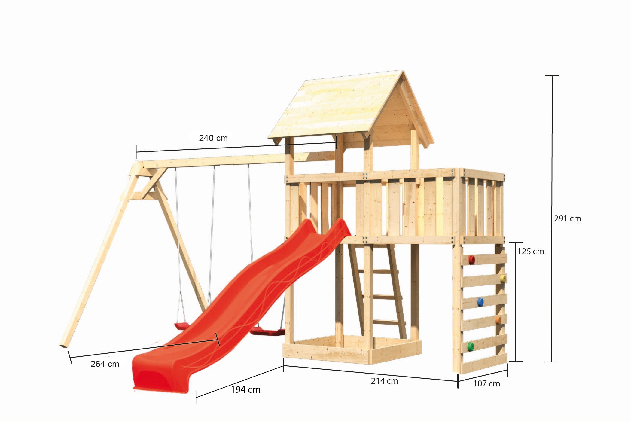 - Podesthöhe für Rutsche 125 cm, und optimal für eine 225 cm lange Rutsche konzipiert