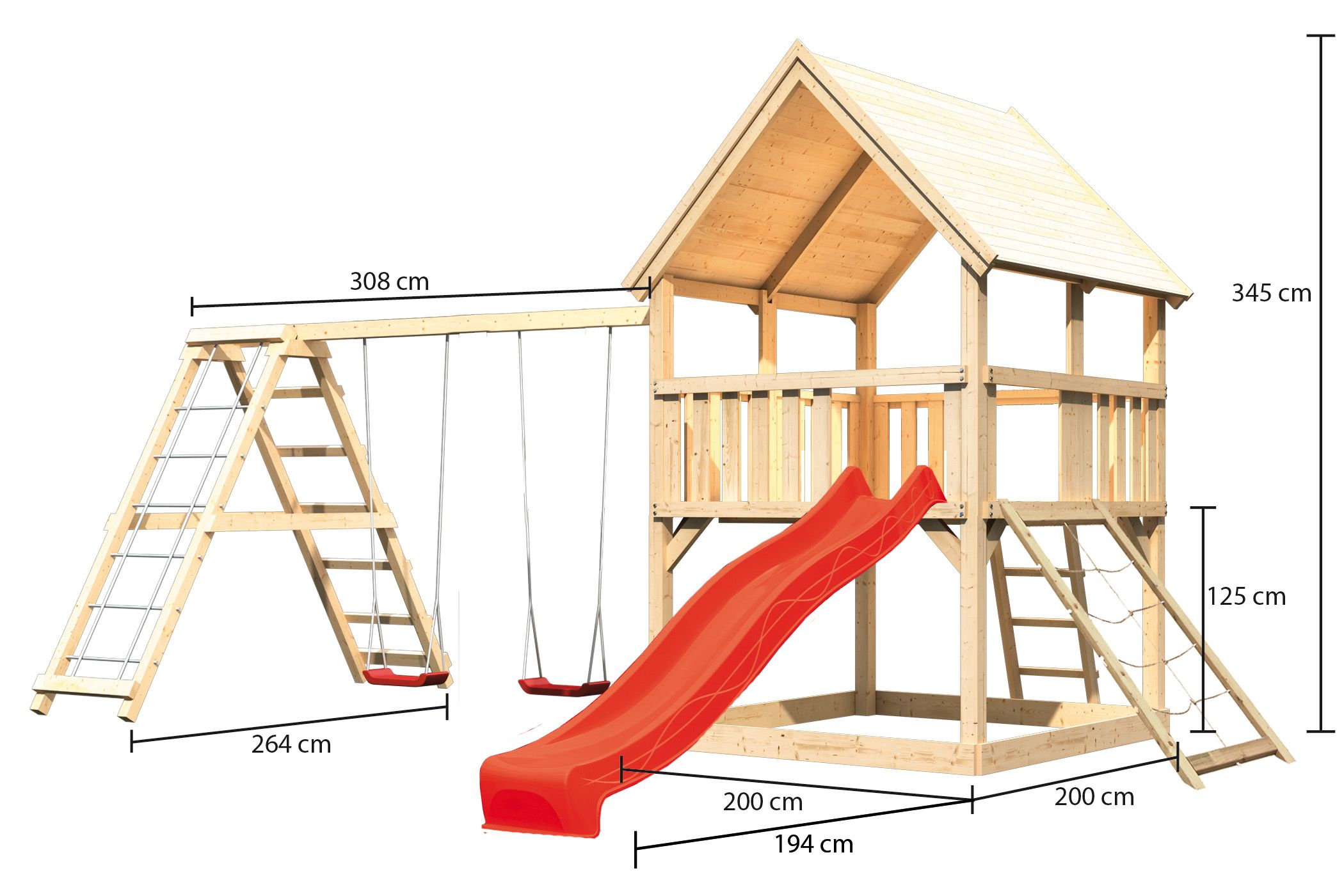 - Podesthöhe für Rutsche 125 cm, und optimal für eine 225 cm lange Rutsche konzipiert