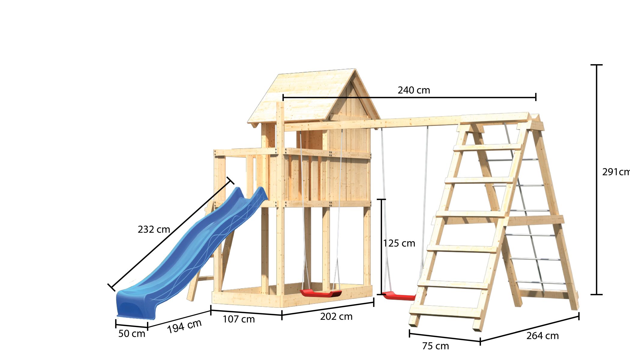 - Podesthöhe für Rutsche 125 cm, und optimal für eine 225 cm lange Rutsche konzipiert